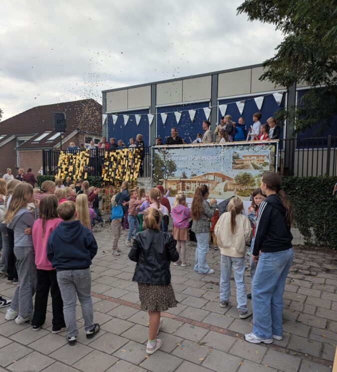 In Vroomshoop is het bouwdoek onthuld met het ontwerp voor het nieuwe Kindcentrum Oranjeschool. Samen met kinderen, ouders en de schoolteams vierden we deze feestelijke mijlpaal.