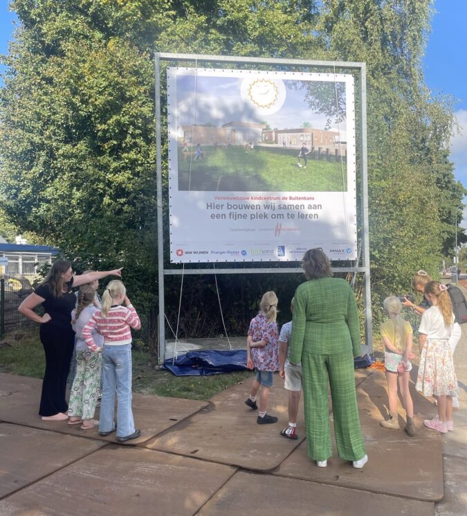 Bij Basisschool de Buitenkans in Gemeente Heerenveen het bouwdoek onthuld voor de vernieuwing en uitbreiding van de school. Samen met de kinderen, het schoolteam en bouwpartners vierden we deze belangrijke mijlpaal.