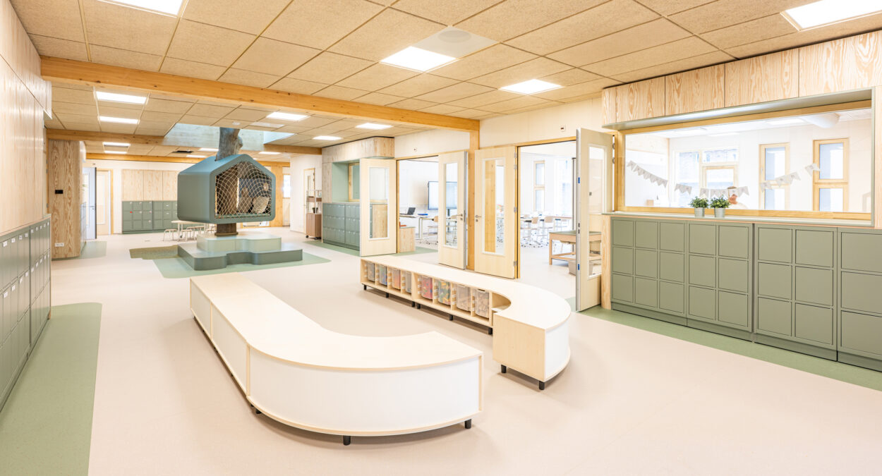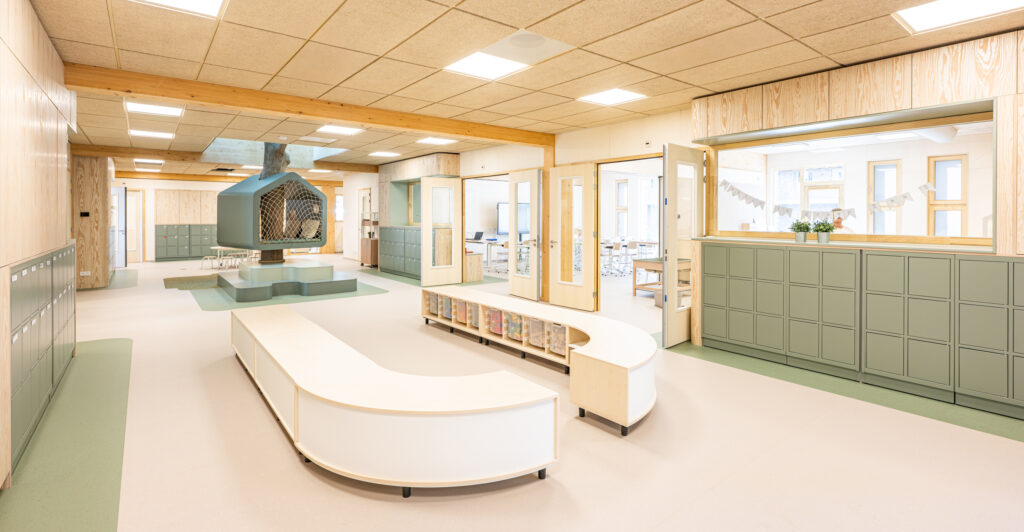 Foto: interieur Kindcentrum Hanzewijk in Kampen – biobased materialen, losmaakbaar ontworpen.