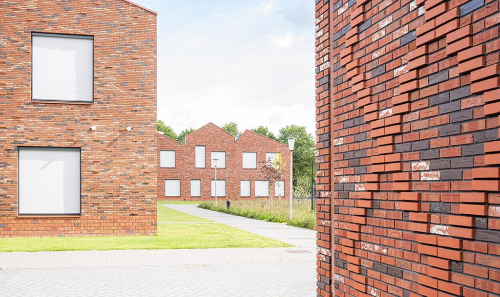 De architectuur sluit natuurlijk naadloos aan bij die van de rest van de schoolgebouwen. Daar waar een gymzaal meestal het uiterlijk heeft van een efficiënte doos, legt hier de verzorgde metselwerk plint een relatie met de vormgeving van het kader/basisgebouw en het brugjaargebouw. Het rode metselwerk heeft dezelfde uitgewerkte patronen en de bovenrand voegt zich naar de skyline van deze gebouwen. Met deze afronding is de campus compleet.